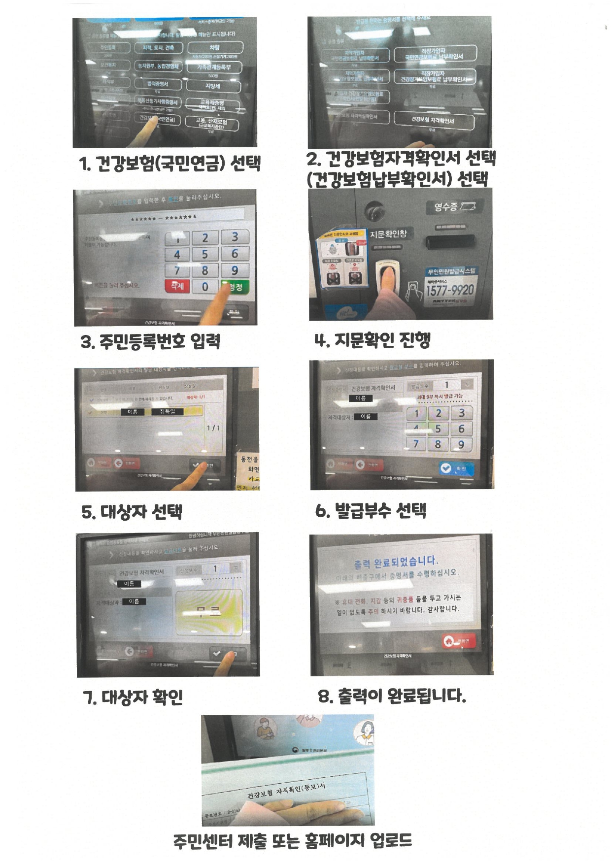 주민센터 무인발급기에서 건강보험관련 서류는 어떻게 출력하나요?.