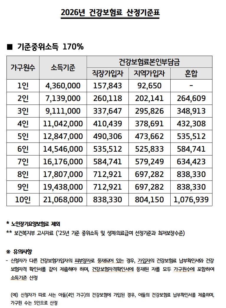 소득은 건강보험료 납부확인서와 건강보험자격확인서를 발급해서 제출하시면 중위소득기준을 확인할 수 있습니다.